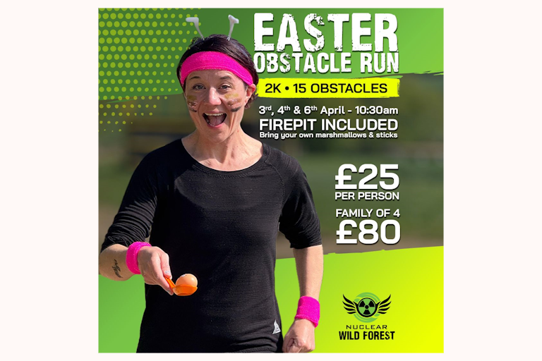 Take on the 2K woodland obstacle run, designed with a relaxed, fun vibe and perfect for ages 6+.